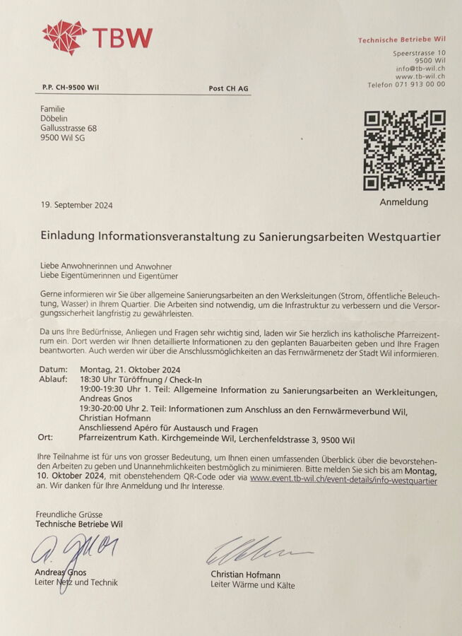 Fernwärme im Westquartier, Anlass am Montag, 21. Oktober 2024