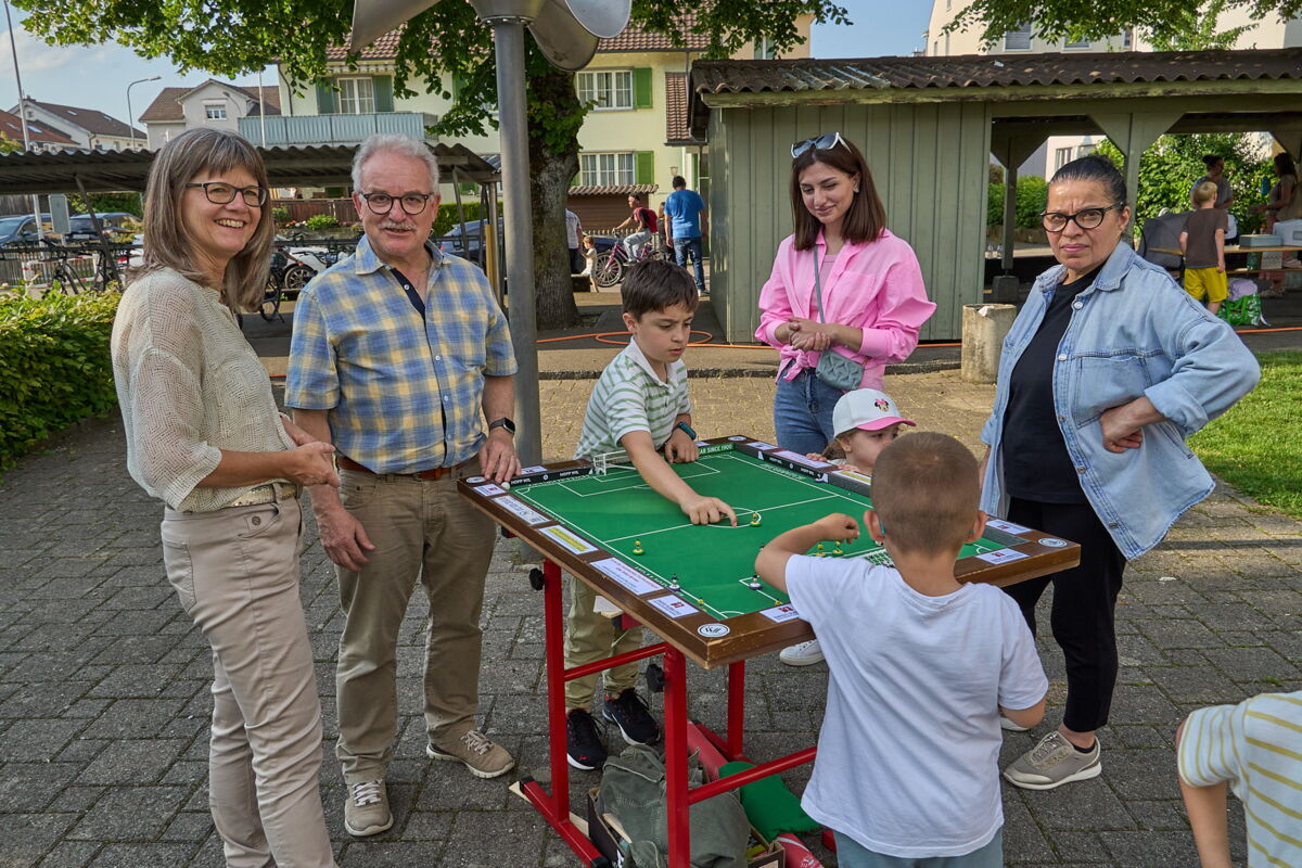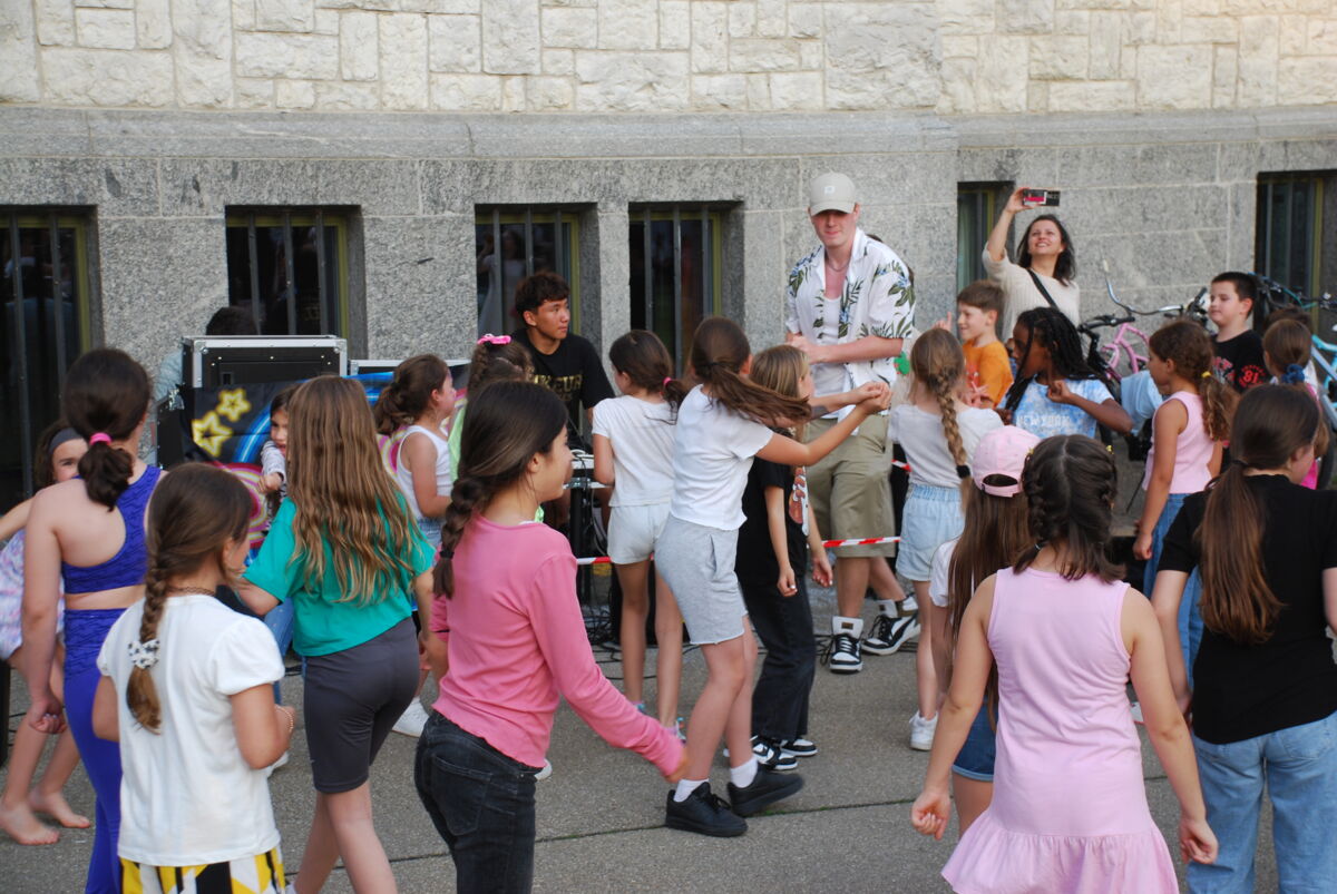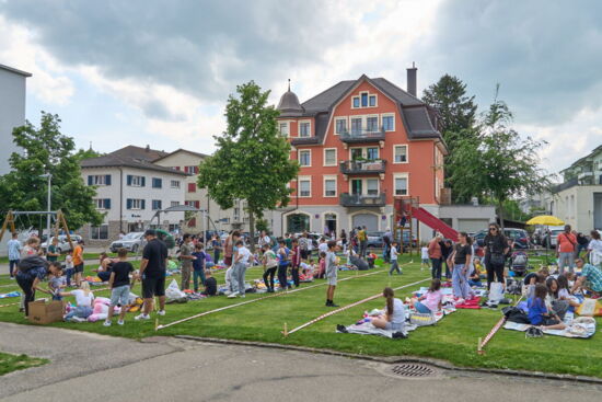 Tja, lieber Petrus, du hast uns ein Wetterglück beschert! Wie so oft! Danke! - Bei angenehmen Temperaturen und nur leichter Bewölkung fand am Freitag, 7. Juni 2024, das traditionelle Schul- und Quartierfest statt. Ein grosser Dank geht da an die Eltern der Schulkinder, die mithalfen beim Aufbau und der Betreuung der Stände. Verschiedene Attraktionen, organisiert von der Lehrerschaft des Alleeschulhauses und dem Quartierverein sorgten für Unterhaltung. Es war ein friedliches, fröhliches Fest, das sogar Erwachsene beim Kindertanz auf den Rasen lockte. Um 23 Uhr, fünf Minuten nach dem Aufräumen, öffnete der Himmel alle Schleusen für einige Minuten.