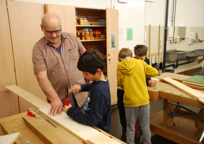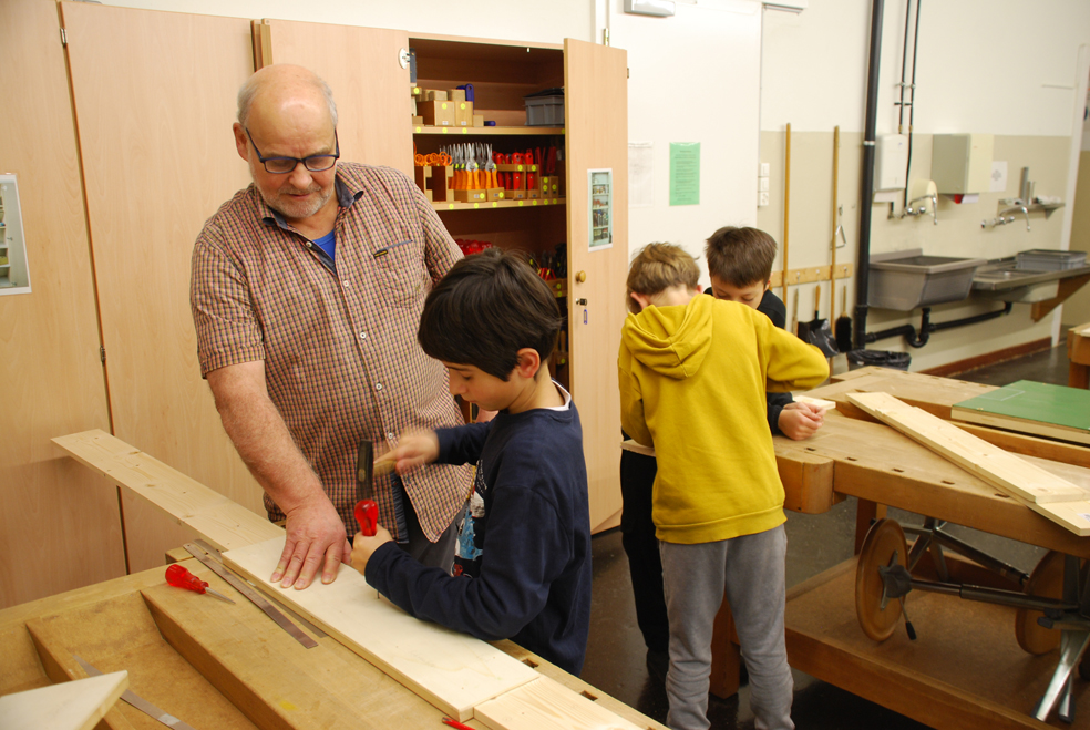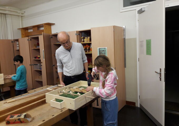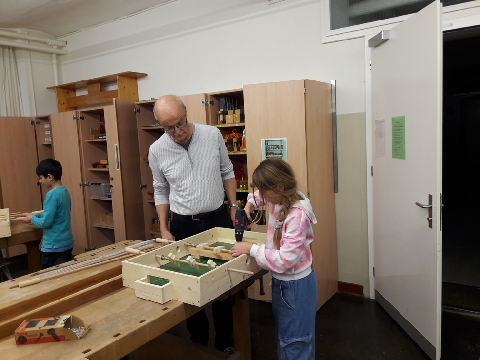 Jedes Jahr organisiert der Quartierverein für die Mittelstufenschüler/innen des Alleeschulhauses in den Wintermonaten einen Werkenkurs. Im Winter 2023/2024 wird ein Tschüttelikasten hergestellt.